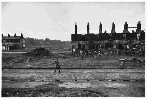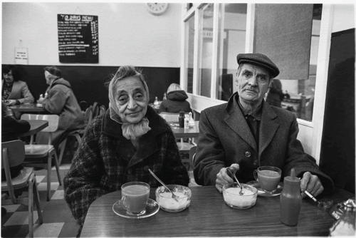 This is what shines out of the portrait of an elderly couple in Bradford in the early 1970s, a place to which McCullin kept returning because, as he says in his introduction, he found the people so astonishing, so charming. The couple sit in a café, whose meals, you can just make out from the blurred menu in the background, are cheap. This is definitively the pre-Lavazza era. He, most probably a retired miner, has a flat cap and a Players Navy Cut just lit; she wears one of those chiffon headscarves that would have been de rigueur at the time wound over her wispy hair. Their glass cups contain a strong brew, their bowls half-consumed custard. The table is ornamented with a squeezy tomato sauce dispenser and a Tetley’s ashtray. It is the sort of photograph that a post-modern art photographer such as Martin Parr would present ironically – and through a sideways glance. But for McCullin these people are in direct contact with him, and with us through him, acquiescent perhaps in their poverty but still possessing a vestige of pride. He looks directly into the camera with a firm stare, she smiles wanly. They both, of course, are looking at us from an England that has vanished in one sense, but remains beneath the surface.