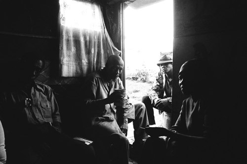 My journey which began at home in Soweto took me to places invested with spiritual meaning in the Free State – religious services, concentration camps from the Boer War, burial grounds in Middleburg, Greylingstad and Brandfort – in my effort to embody the South African landscape. In 1997 I started to visit the shadow grounds in Europe, like Ravensbrück and Auschwitz. I was looking for answers, but all I found were shadows.” – Santu Mofokeng