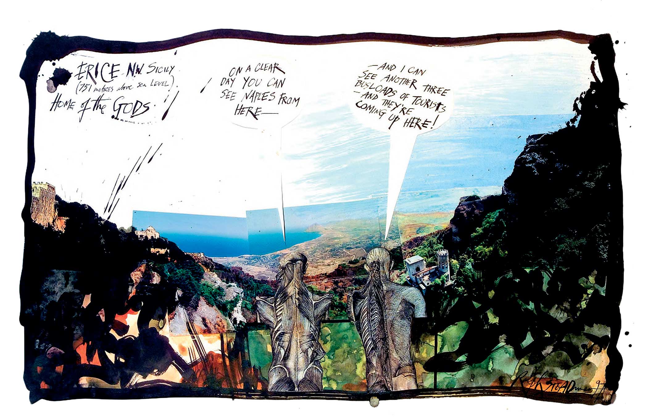 And how about a grand rite of Summer Solstice, in echo of the Celts? We’re living in a time of austerity; whilst our predecessors hoped for corn, we hope for cashflow. Imagine: a giant HB pencil, tall as a house, thrust into the middle of a village green. Steadman’s cartoons can be twirled into paper-chains, woven by kiddies around the HB pole to form an exquisite totem. This would then be followed by that most barbaric of ancient religious rituals: a sacrifice. But rather than pick on some poor virgin, let’s find a more deserving victim: a politician or banker or placeman of Steadman’s choosing. Dressed in a suit, they can be raised to the heavens by the followers and then, literally, lampooned by a hundred pencils.