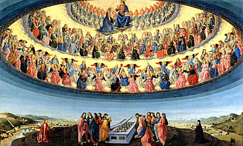For the non-believer, perhaps focusing on this “poetical teaching” can offer a way of engaging with religious art in a manner beyond merely cultural or aesthetic appreciation; one which begins to dance, albeit gingerly, along the perimeters of the theological. What we experience in religious art, ultimately, doesn’t have to lead us into heaven. In Botticini’s “Assumption”, the disciples gather around Mary’s tomb, only to discover an assortment of lilies has taken the place where her body should rest. Uncomprehending, they look around in bewilderment. If looking at religious art can leave us similarly stunned, perhaps for some that’s more than miracle enough.