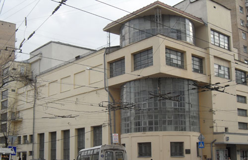 A trip round Tractor Street reminds that in the process something very valuable was lost. It forms a central part of Narvskaya Zastava in St Petersburg, an area designed between 1925 and 1932 with a similar wit and imagination. There are both new forms and new functions here. First, familiar building types – a school, a town hall – are radically re-imagined. There’s the School for the 10th anniversary of the Revolution, a building arranged in the shape of a hammer and sickle, just as churches used to be arranged in crosses, with an observatory on the top floor so that the children can see what there actually is in the skies; and the district Town Hall, a long, asymmetrical strip-windowed building by Noi Trotsky (no relation), culminating in a Constructivist tower with an illuminated hammer and sickle. But the other buildings in the area are completely new in their functions. One is a “Factory Kitchen”, a combined catering centre and social space designed to save local women from “kitchen slavery”, an avant-garde design of concrete and glass which is now besmirched by logos – a common feature of contemporary Russia, where every available space is covered in advertising. One wing of the kitchen now houses a McDonalds. In a slightly better state, over the road, is Gegello’s Gorky Palace of Culture, named after the great man himself.