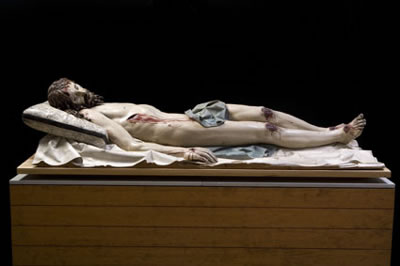 And in order to deliver their message these works, all too clearly, go much further than any merely representative impression of human mortality. Rather, they lavish attention upon every aspect of real, bodily death, obsessing over every oozing earhole, gored groin and tenderised tendon, until the effect goes way beyond one of otherworldly meditation – this, they cry out, is the living reality of death itself. Gregorio Fernández’s sculpture “Dead Christ”, for example, is stunningly gorgeous in terms of artistic finish, but it might have been inspired by the bonus extended flagellation scene from Mel Gibson’s anti-Semitic sado-masochistic bonanza The Passion of the Christ.