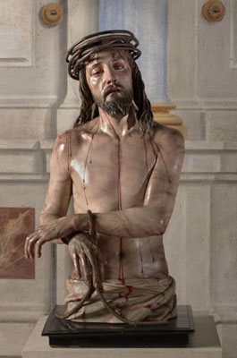 From 21 October to late January, gallery-goers will be confronted with an onslaught of bruisingly realistic and grotesque imagery: Christ pulverised and collapsing in his manacles, sagging in agony on the cross, or lying dead, with wounds you could stick your finger in, eyes rolled back, bleeding from ear to orifice; St Francis, in all-too-human bodily solidity, gazing forlornly up into the dark, inscrutable heavens; a weeping Mary, in meticulously sculpted and tinted polychrome, so lifelike you want to bring her a cup of tea and a handkerchief .