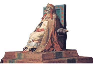 His scheme was shrewd enough, then, anticipating the show trials of Stalin, Hitler and Mussolini in the 20th century. The point being to publicly obliterate an opponent’s legitimacy, and to confirm him as the loser in the most final and horrifyingly visual fashion. The symbolic and the literal, message and medium, became one once more as Stephen rammed home the grand association between decay and disempowerment, appealing to the dog psychology that lies latent in us charming human creatures, awaiting its opportunity to leap free of all previous principle and position and pile in to tear a strip off the already fallen. Stephen must have looked awfully impressive and assured of his holy mandate as he strode around the courtroom bellowing abuse at that putrid, reeking bag of bones. He was strangled to death not long afterward, but his delightful idea had obviously struck a chord. Ten years later poor old Formosus was re-exhumed, re-tried, re-condemned and re-tortured by Pope Sergius, this time having his head lopped off along with three more fingers, before being tossed once more into the Tiber. We can only suppose that he had stopped caring by this point.