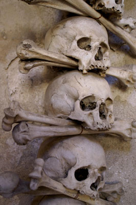 All the words I can think of to describe the effect seem rather hackneyed. But words such as “uncanny” or “awesome”, taken in the tenor with which they were once used, can get us somewhere near it – one really is struck with awe. Like the work of the Spanish realists, its power seems to lie in the fact that the spectacle is both symbolic and literal at the same time. That’s to say that the bones represent a symbolised, mythopoeic death, while also being the leftovers of the process of real, bodily death. Whereas most symbols gesture away to some comfortably distant paradigm, these ones are themselves what they mean. Forget Marshall McLuhan – these bone artists had already figured out centuries ago that the medium is the message.